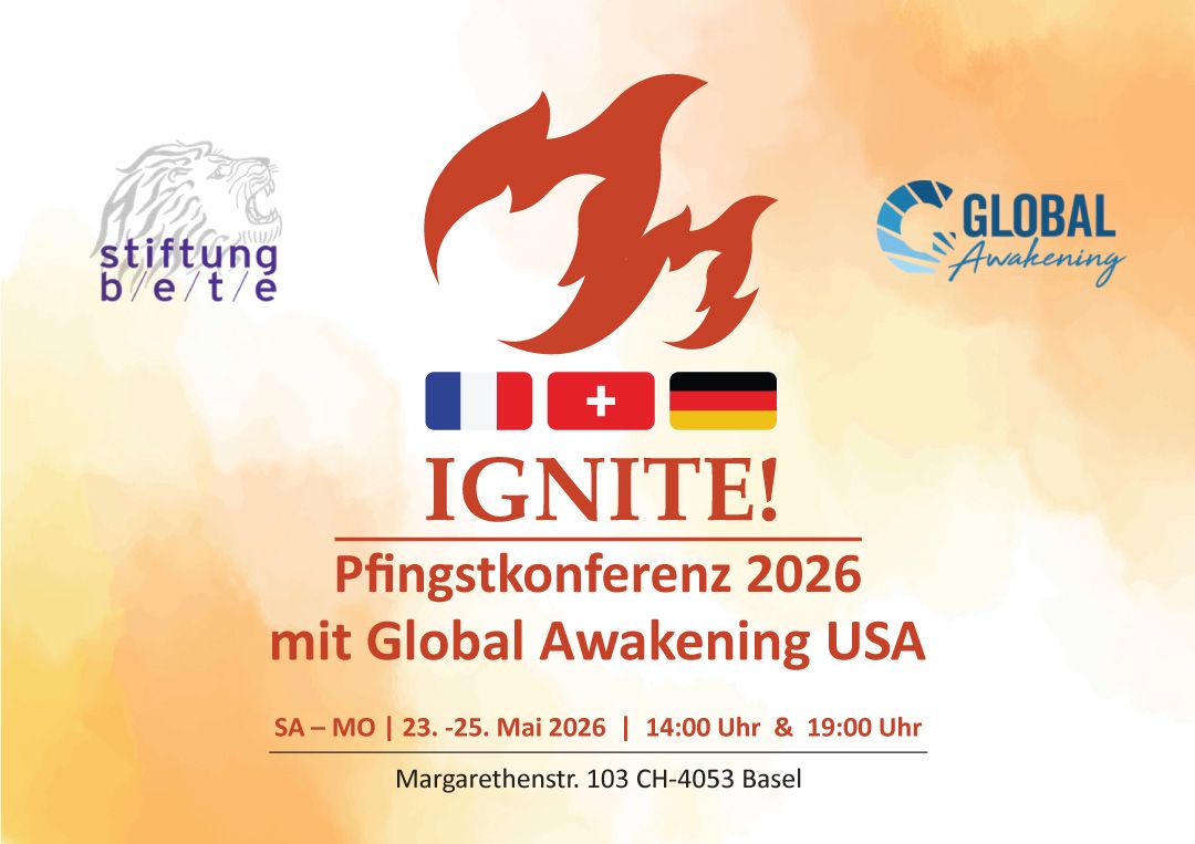 Special Meetings mit Adam F. Thompson, ursprünglich aus Australien. Er hat einen starken prophetischen Dienst, besonders auch die Gabe der Auslegung von Träumen. Er wird am SA u. SO, 28. & 29. März 26 je um 18.30h in der Margarethenstr. 103, 4053 Basel (hop Gebäude) predigen.